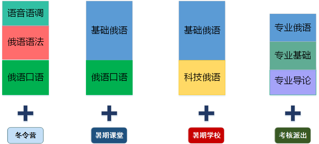 沉浸式强化学习俄语,由中方的俄语老师讲授基础语法,外教讲授俄语语音、俄语口语、基础俄语、科技俄语、专业俄语。