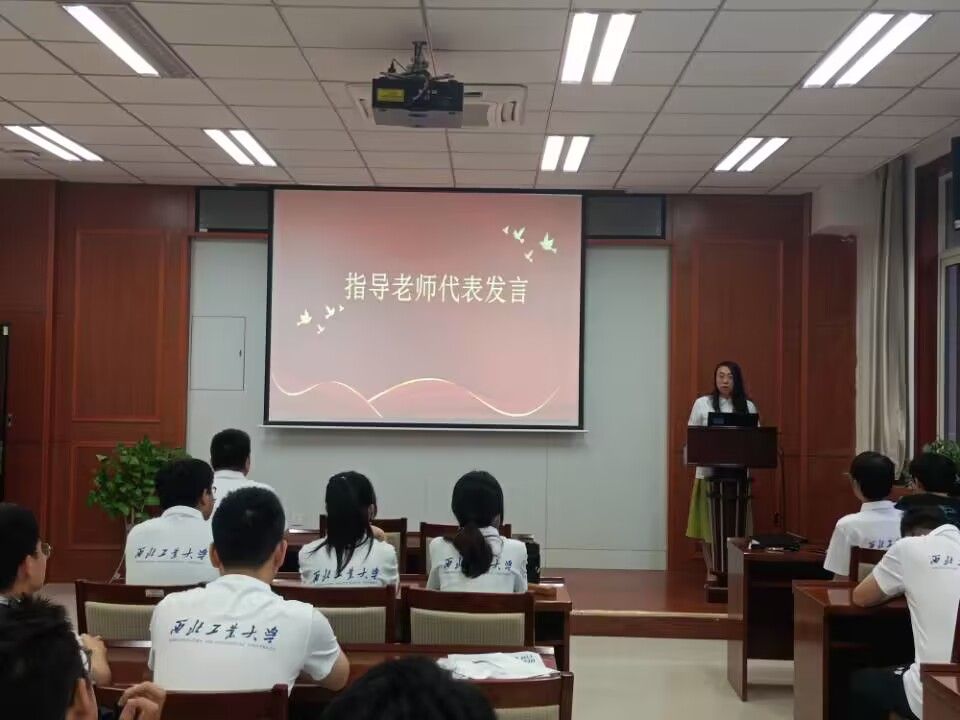 随后,由团委姜倩老师作为指导教师代表上台发言。姜倩老师简述了本次暑期实践的意义,指出社会实践是大学生素质培养的第二课堂,对大学生日后走入社会、走进人民群众具有极其重要的意义。同时表示学院将切实关注实践动态,希望同学们可以在实践中长才干,不断提高与时代发展和事业要求相适应的素质和能力。