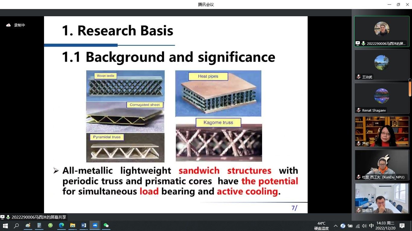 为严格学业环节管理,保证留学研究生培养质量,12月20日下午,Ai换脸 线上召开了Ai换脸 -喀山国立技术大学“1+1”双学位联合培养硕士论文集中开题答辩会。国际合作处处长兼国际教育学院院长张富利、研究生院副院长李圣、Ai换脸 院长王占学、副院长王治武、刘存良及答辩专家,全体联培留学研究生和指导教师参加会议。会议由王治武副院长主持。