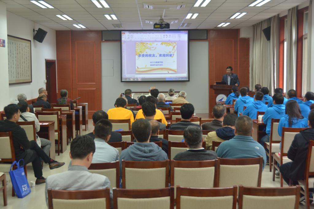 上午十点,学院在225会议室举行了校友座谈会。院长王占学代表学院致辞,欢迎各位校友回到母校,感谢广大校友对学院发展的关注和支持,并向校友们汇报了学院的发展历程,以及近几年来学院在学科专业建设、科学研究和人才培养等方面取得的成绩。校友代表1964级本科7241班毕业原校领导马彦群老师、1996级硕士96607班毕业现任中航工业成都飞机设计研究所条件保障部部长孟丛林分别发表回校感言,他们为学院的发展壮大而自豪,为同学们的再次相聚而欣喜。校友们一致表示,无论时隔多久回到母校,总是能感受到浓浓的回家的感觉,相聚虽然短暂,但和母校同呼吸、共命运的感觉更加深刻!随后,1996级硕士96607班向学院捐赠了歼20模型和校友自己的书法作品。