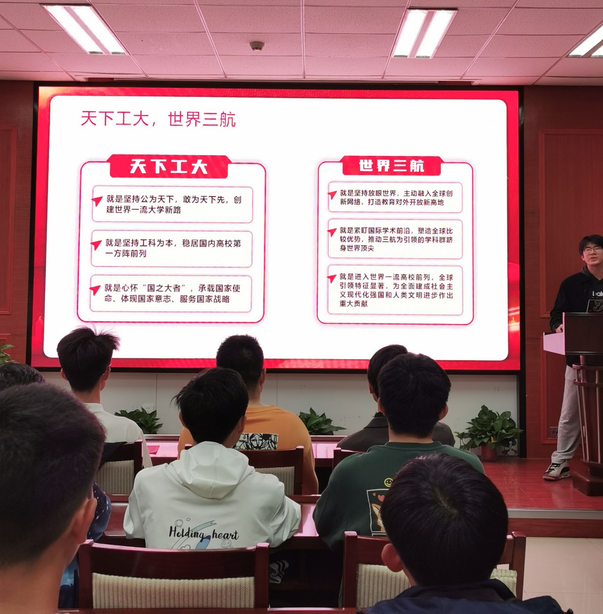 2023级凌云班学生与远在俄罗斯的2022级凌云班学生连线,采用线上线下相结合的模式,共同举办“生逢其时拼搏,强国复兴有我”的主题班会,班会由2023级凌云班班长冯晨希主持。