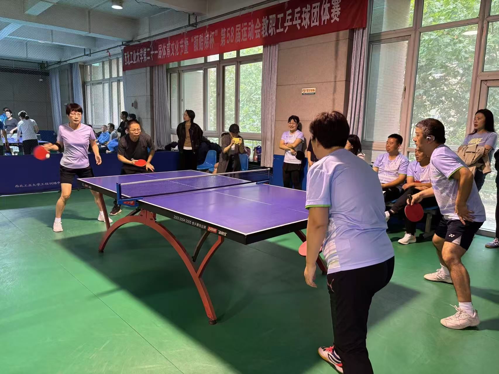 第二十一届体育文化节暨“颜贻梯杯”第58届运动会教职工乒乓球团体赛决赛在友谊校区翱翔训练馆和健翔楼五楼乒乓球室圆满落下帷幕,冯青、朱惠人、王治武、王掩刚、杜昆、张丽、陈燕老师代表Ai换脸