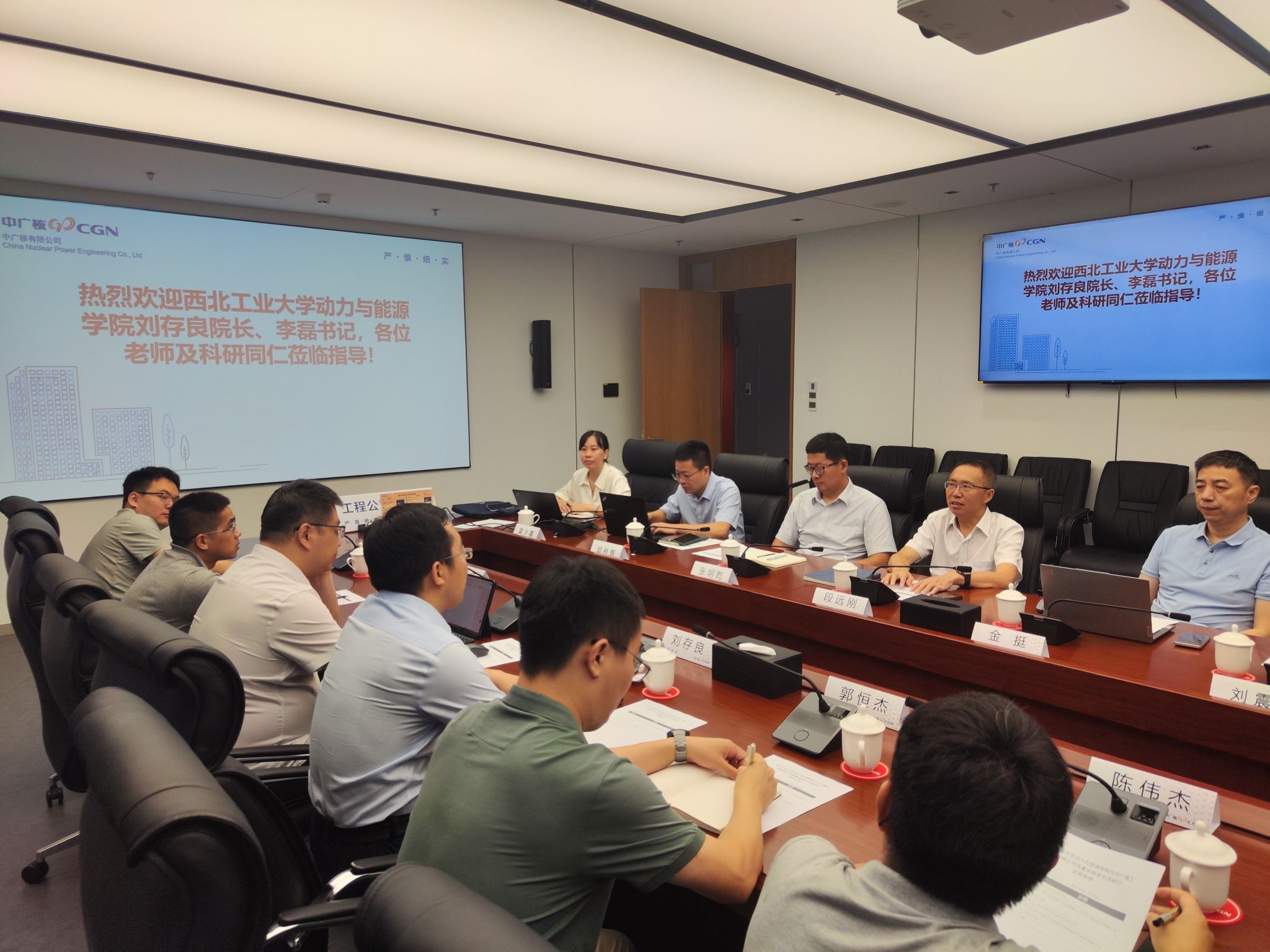 与中广核工程有限公司搭建了良好的学术交流平台,双方在核能动力领域的多个关键问题上达成了广泛共识,并为未来进一步的合作奠定了坚实的基础。通过此次交流,双方不仅加强了学术联系,还为推动核能技术的创新发展贡献了智慧和力量。