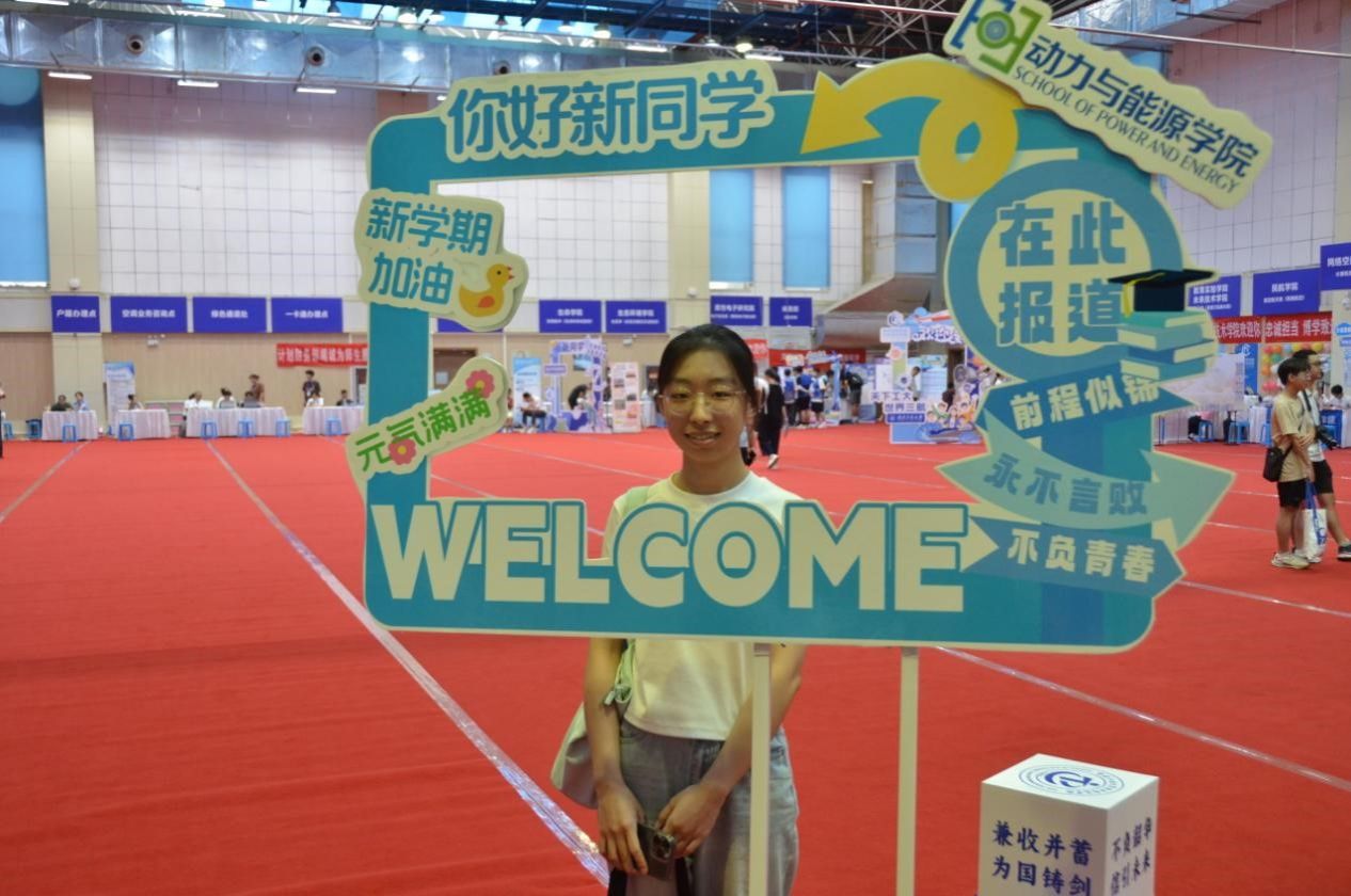 同学们到达内场,递上身份证,确认个人信息,拿到属于自己的一卡通,最后在展板处合影,欢迎你成为一名动能人。