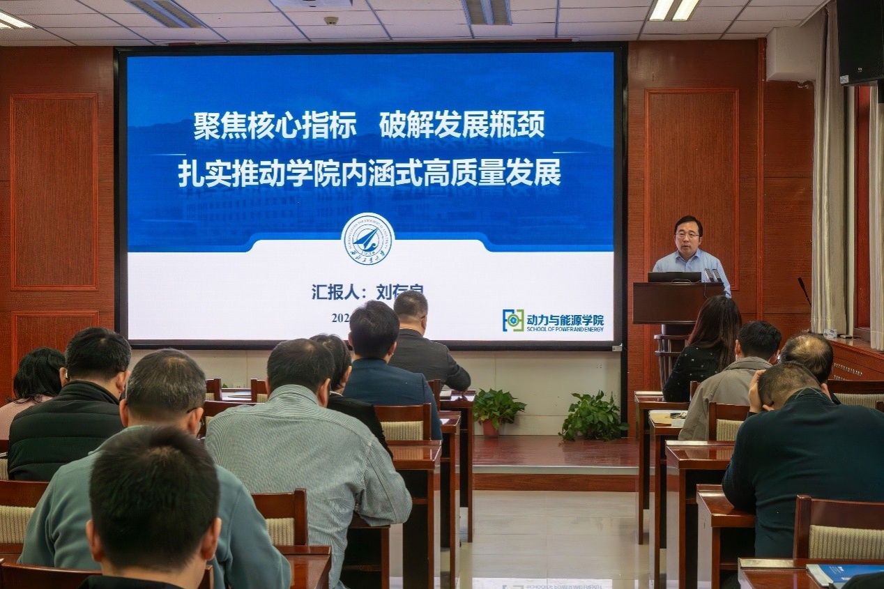 随后,学院院长刘存良作题为“聚焦核心指标,破解发展瓶颈,扎实推动学院内涵式高质量发展”的工作报告。报告系统回顾了2025年学院在人才培养、师资队伍、科学研究、国际合作四大核心领域的工作成效,同时,报告也客观剖析了学院在核心指标提升、发展瓶颈破解等方面存在的不足,并明确了2026年学院重点工作方向。