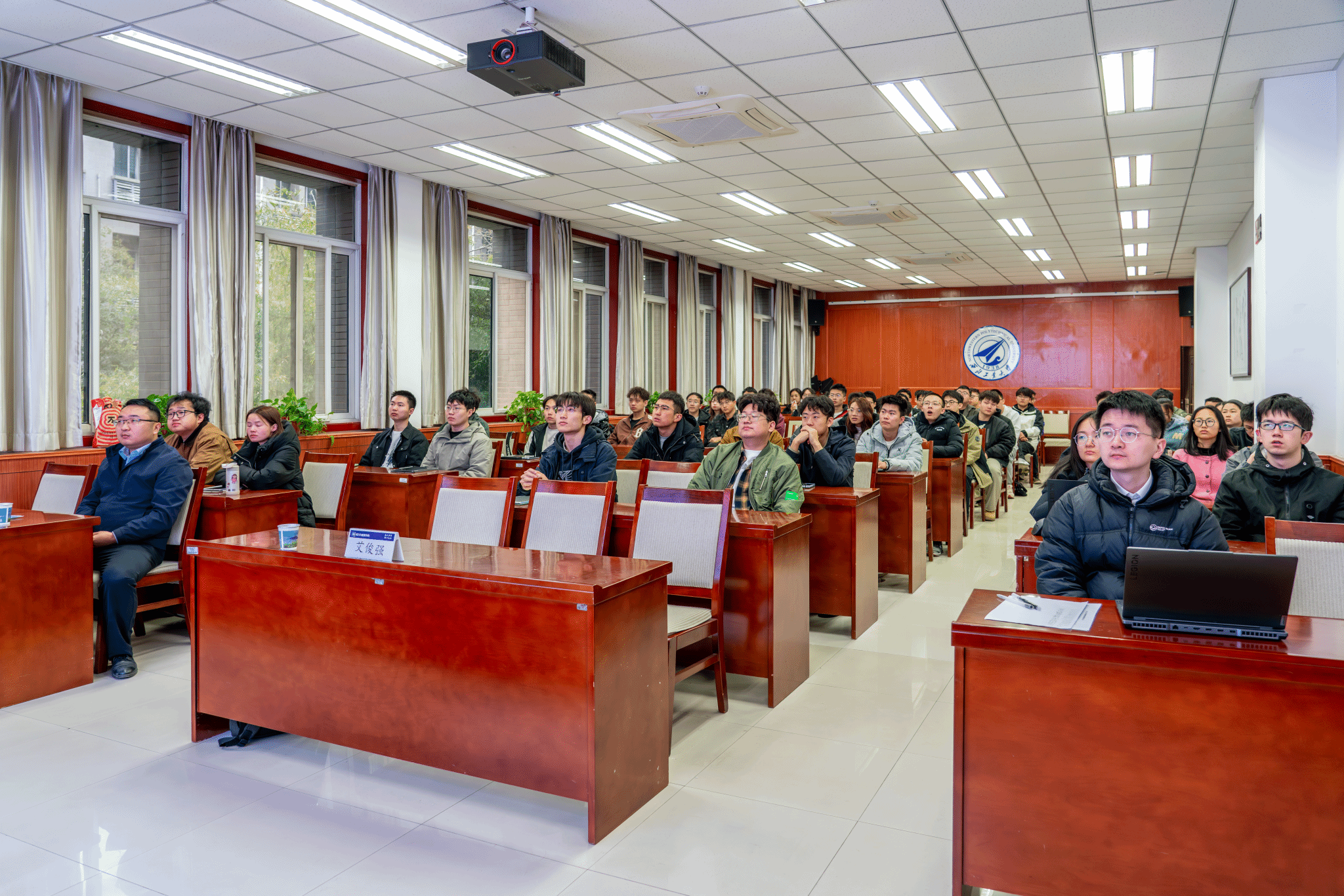 在交流互动环节,与会师生踊跃提问,围绕变体飞机前沿技术、航宇以及动能专业发展前景、个人学业规划等问题现场求教。艾俊强研究员耐心细致、深入浅出地答疑解惑,现场氛围热烈浓厚。整场报告拓宽了动能师生视野,凝聚了奋进共识,进一步激发了同学们深耕专业、科创报国、勇担使命的奋斗热情。