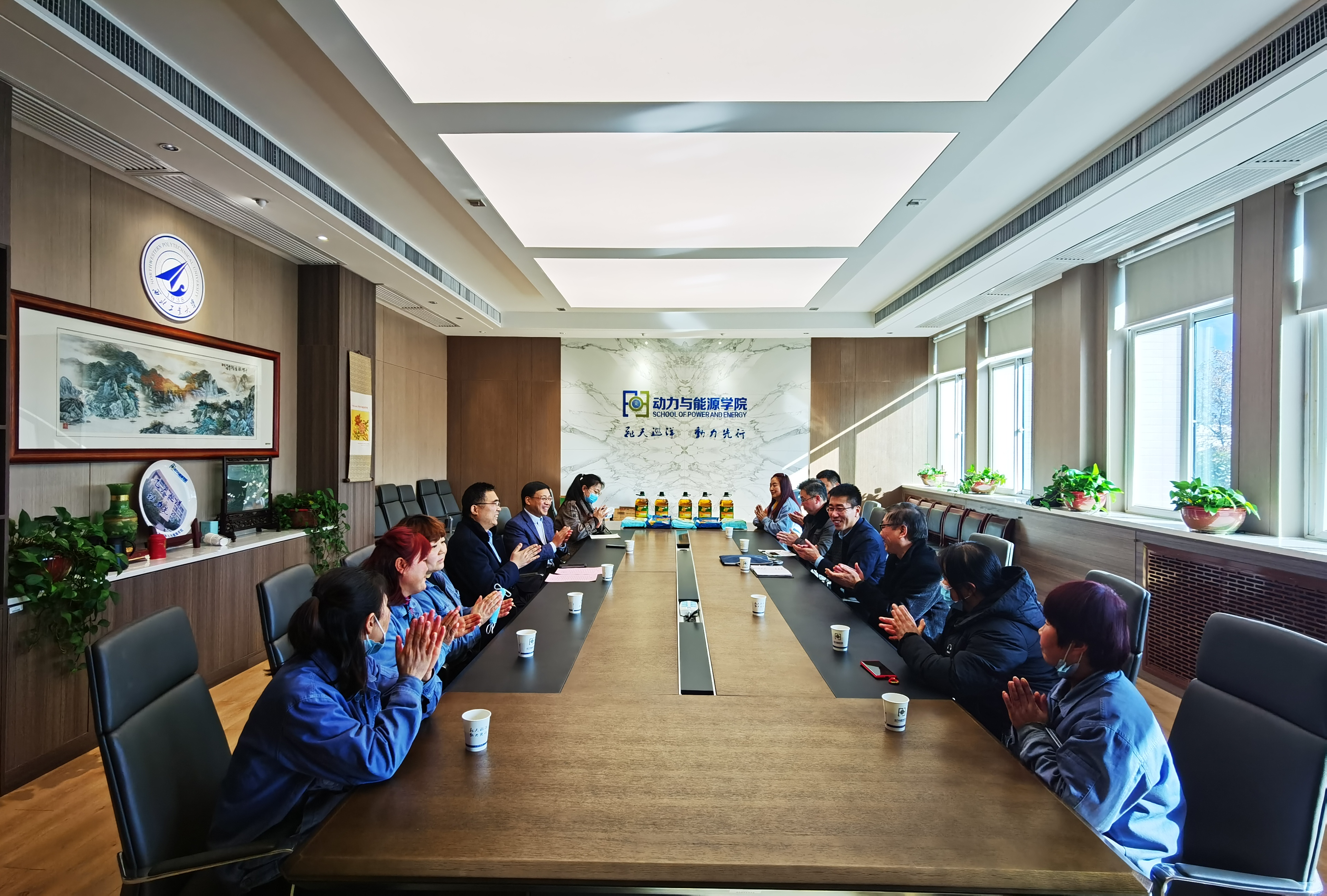 王占学、闫育周分别对后勤产业集团的工作表示了肯定和感谢,特别是在疫情防控期间,物业人员在做好本职工作的基础上,承担了学院楼门卫值守、楼内消杀等工作,为学院师生提供了一流的服务,让师生在安全、温馨的环境中开展教学科研工作。