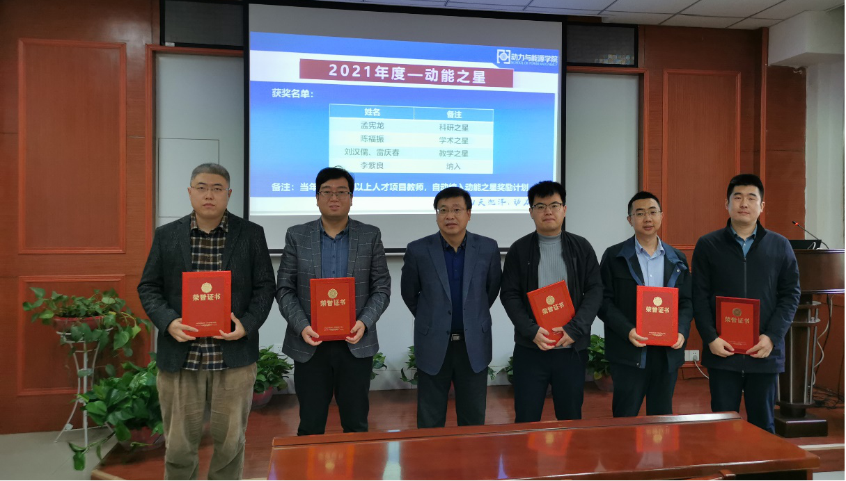 “见贤思齐焉,见不贤而内自省也”。会议一开始,王占学院长首先对获得2021年度获得动能之星的五位青年教师表示祝贺,并举行2021年度“动能之星”颁奖仪式,对孟宪龙、陈福振、刘汉儒、雷庆春和李子良五位教师在科学研究、教育教学和国际合作工作等方面所取得的优异成绩进行表扬和肯定,同时希望全院青年教师能以这五位教师为榜样,做到均衡发展的同时发挥各自的优势和特色,实现以科学研究、人才培养、教育教学和国际合作交流为主的多赛道协同发展。
