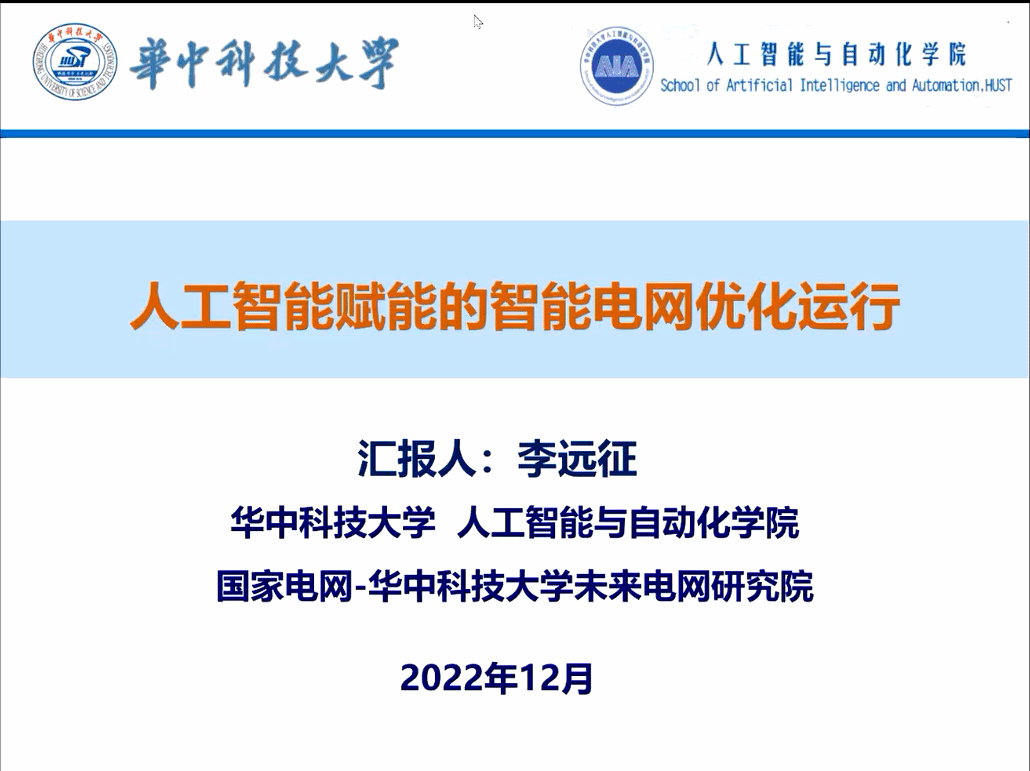 2022年12月17日上午10点,应Ai换脸 陈映雪副教授邀请,华中科技大学人工智能与自动化学院李远征副教授围绕《人工智能赋能的智能电网优化运行》进行了一场精彩的学术报告。