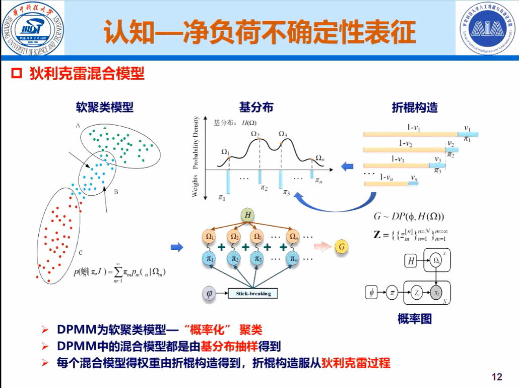 首次,针对新能源认知难度大的问题,李远征副教授以净负荷不确定性表征做切入点认识新能源。随着新能源并网比例逐渐攀升,净负荷不确定性难以有效刻画,极大地影响电网运行调度。净负荷不确定性的传统表征方法为在预测值的基础上,利用经典概率分布、混合高斯分布,狄利克雷混合模型拟合净负荷的预测误差。传统方法存在数据信息未充分利用的问题。为此,李远征副教授提出数据关联的狄利克雷混合模型,考虑净负荷时序关联性并结合改进EM算法获得先验信息,使得到的混合模型更加准确,收敛性更快更好。