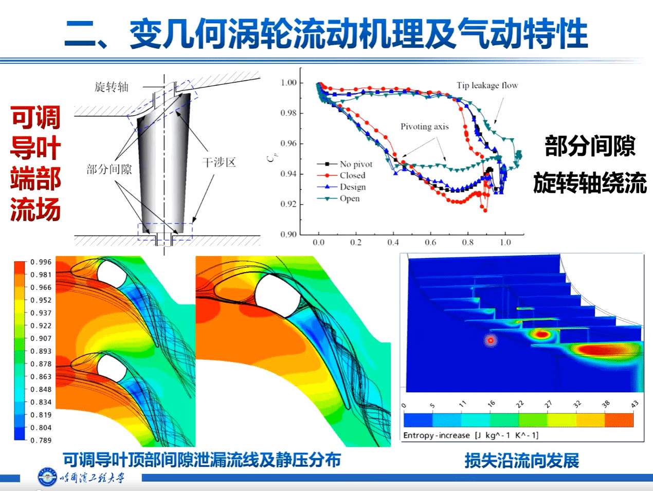 杜昆副教授主持。高杰教授首先针对航空发动机气涡轮中低压涡轮进行变几何设计的必要性和可行性进行详细论述并表示:采用变几何设计可以使发动机具有良好的高/低速性能,可获得更优的加速性、机动性和航程能力。然而变几何涡轮设计会导致发动机涡轮效率降低,因此变几何发动机优化设计技术对提升发动机性能具有至关重要的作用。