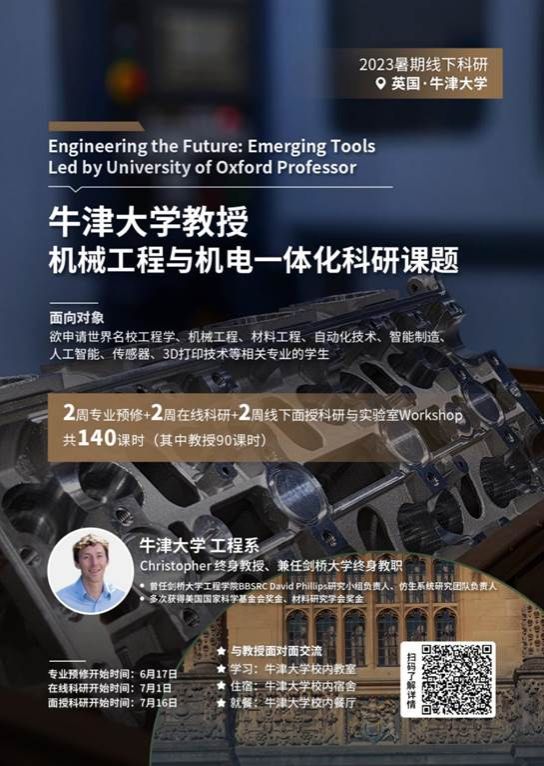 牛津大学教授暑期线下科研项目