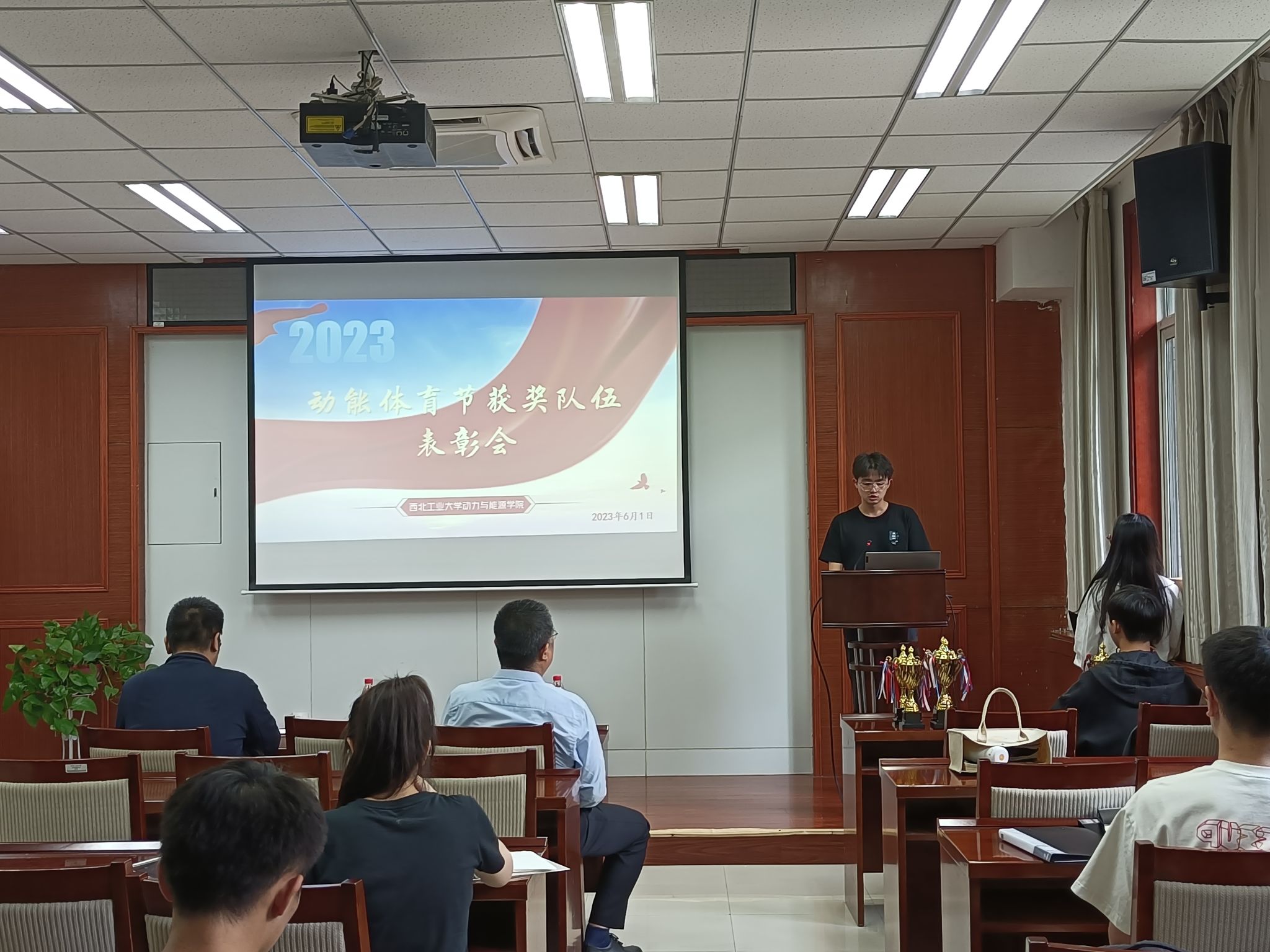 随时间步入学期末,我院动能体育节也即将落下帷幕。在本次体育节中,各支队伍奋勇争先、勇争第一,为大家展现了动能学子的熠熠风采。为表彰动能体育节中的获奖班级及先进个人,动力与能源学院于6月1日下午召开动能体育节表彰大会。学院党委书记闫育周、党委副书记刘海涌、团委书记姜倩出席本次大会,学院学生会成员、动能体育节获奖队伍队员及先进个人参会,学院学生会成员石梦琦主持大会。