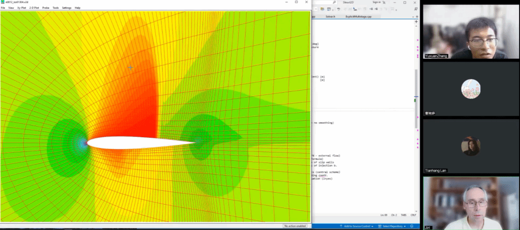 在Jiri Blazek教授的指导以及助教老师王丁喜教授、助教学生张宇轩同学的帮助下,《流动数值模拟基础》课程顺利结课。该课程主要介绍了计算流体力学的基本数值方法,从一维对流方程求解器开发,到一维欧拉方程求解器、二维欧拉/NS方程求解器开发,由浅入深,层层递进。具体包括公式推导、代码结构建立、空间离散、边界条件设置、时间推进方法和多种加速收敛方法。Jiri教授十分注重理论和实践相结合,上课过程中要求学生动手编写程序,所有程序设计采用C++进行,有力地培养了学生计算流体力学理论基础,代码编程实现的能力。