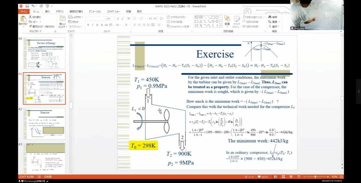 在Akira Nakayama教授的指导以及助教老师白晓辉老师的帮助下,《工程热力学》顺利结课。该课程主要学习热力学第一定律和热力学第二定律。详细讲述封闭系统和开口系统。重点讨论各种热力学性质,如内能、焓、熵、亥姆霍兹自由能和吉布斯自由能,以了解它们的重要性和物理意义。Akira Nakayama教授十分注重与同学们的沟通,通过同学自我介绍的形式帮助大家克服开口难的问题,授课过程中鼓励大家积极讨论,踊跃发言,学生提出疑问后总会得到老师详细的解答,同学们受益匪浅!