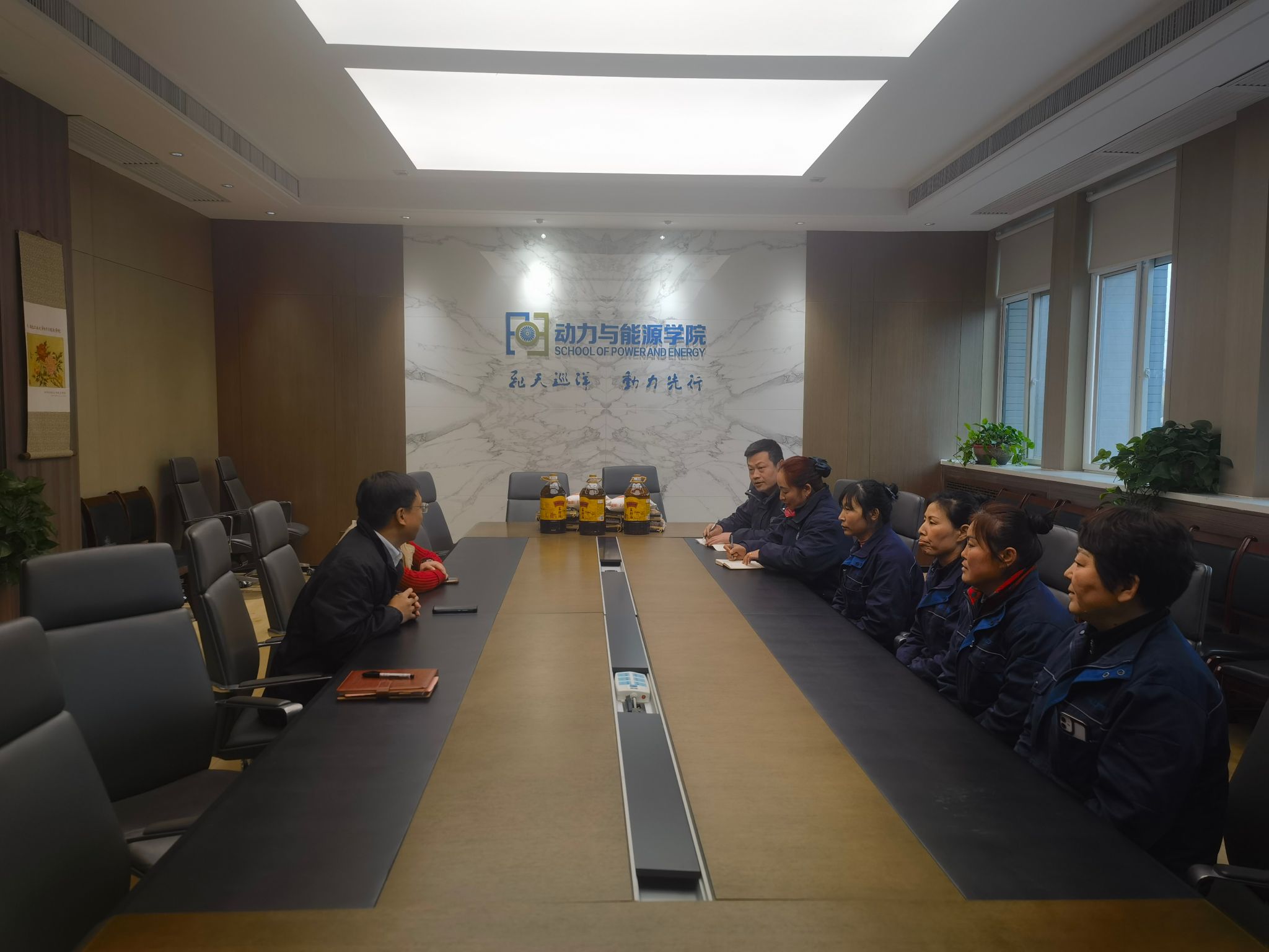 2月28日下午,动力与能源学院在长安校区学院楼211B会议室召开物业服务人员慰问会。党委书记王占学、办公室主任李斯雯、物业经理苟小库和学院楼物业服务人员代表参加了会议。