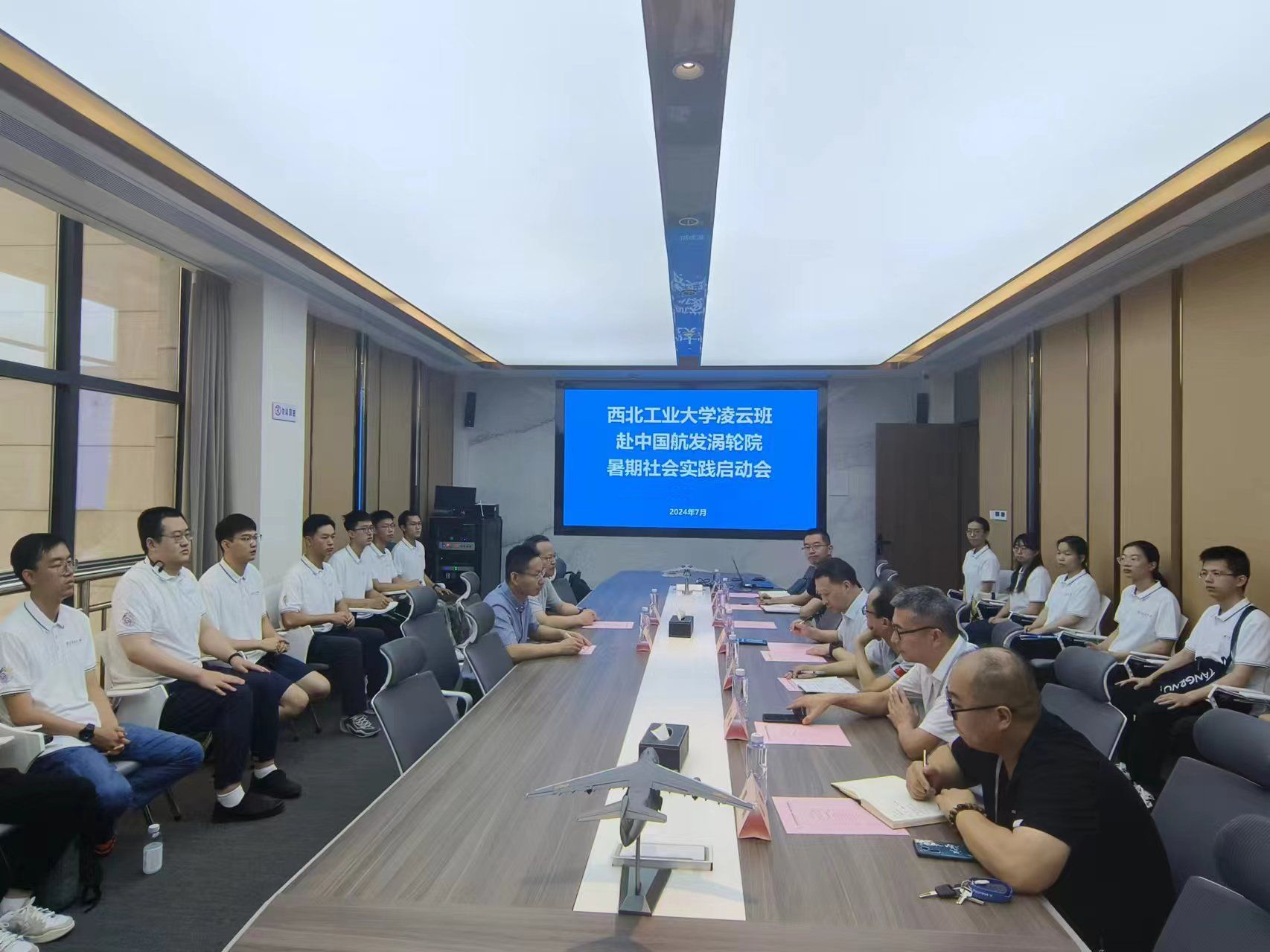 会议上对科研实践进行了动员和部署,明确这次实习的重点在于学习交流与研究探索,鼓励同学们积极主动向实习导师请教问题,同时强调了相关的规定与要求。同时举行了西北工业大学——中国航发涡轮院“砥砺凌云志、共筑中国心”动力与能源学院“凌云班”社会实践基地授牌仪式。