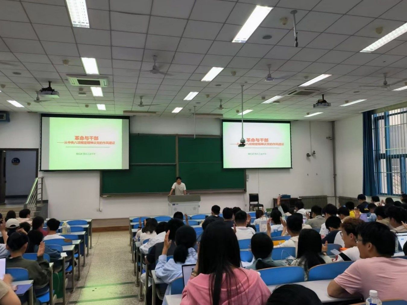 4月24日,高红波副教授以《加强党的作风建设——学习中央八项规定精神》为题,系统阐释了中央八项规定的制定背景、核心要义及深远意义。高教授通过近年来违反中央八项规定的典型案例,对中央八项规定纪律要求进行深入解析,引导学员树立正确的价值观,强化“慎独、慎微、慎初”的纪律意识养成。同时,他勉励学员们树立远大志向,把握正确的人生方向,肩负起时代赋予的历史使命。