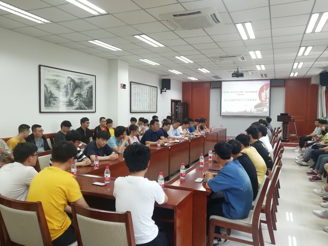 王占学院长强调此次会议的目的就是发现问题、提出解决问题的方案,希望学生们能够畅所欲言,将所在班级的意见充分反映到会议上来。