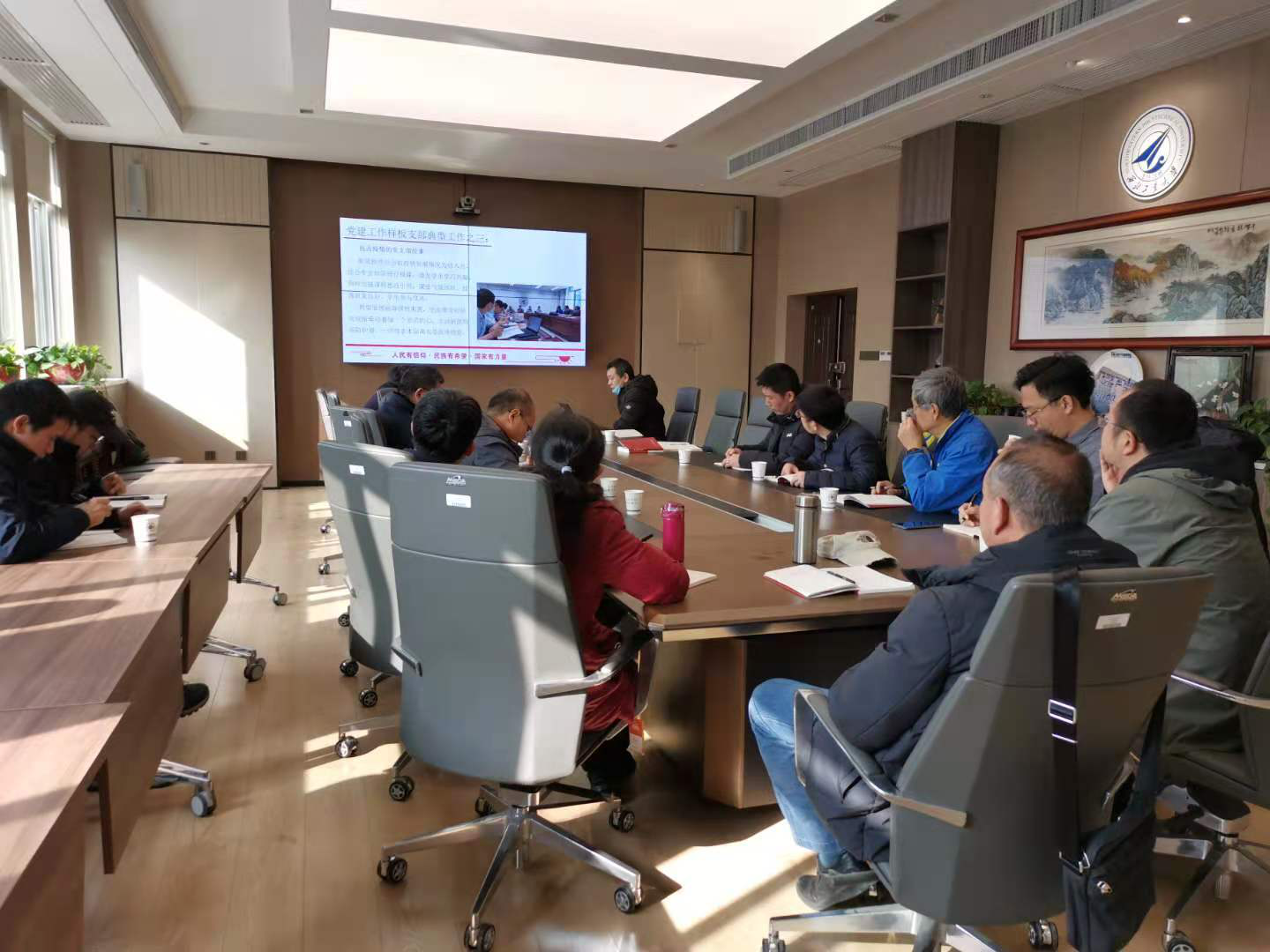 肖隐利首先汇报了“样板支部”建设情况。从支部的典型工作案例、新闻稿汇总和公众号建设情况等三方面进行了详细介绍。随后,支部党员郑伟玲、胡建平、郑龙席、张丽芬等围绕如何更好建设支部、加强思想政治教育、促进教学科研和发挥航空推进系特色等内容展开了热烈讨论,并提出许多建设性意见和建议。