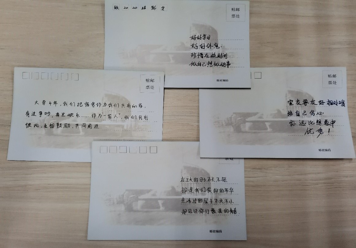 2020年7月15日,由党委学生工作部、动力与能源学院主办的“传室铭”等毕业季活动圆满结束。活动过程中众多宿舍积极配合,进行宿舍打扫,合影留念、锦囊传承等活动,完成了毕业生教育的最后一堂“德育”实践课。一封封饱含深情的寄语,充盈在毕业生心中的是浓浓的离别之念和祝福之情。