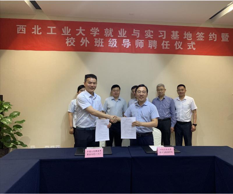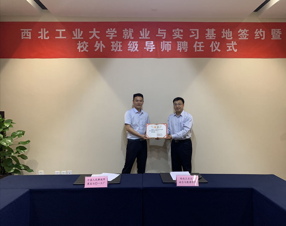 为加强校企联系,促进校企合作,本着“互利共赢,共同发展”的原则,2020年5月19日上午,西北工业大学就业与实习基地签约暨校外班级导师聘任仪式在长安校区南山苑万华厅举行。动力与能源学院院长王占学、副院长刘存良、副书记刘江、教师代表王俨剀、第五七〇一工厂副厂长兼总工程师卓伟伟校友、党群党支部书记兼党建人力部副主任董宝君等参加了签约仪式。会议由刘江主持。