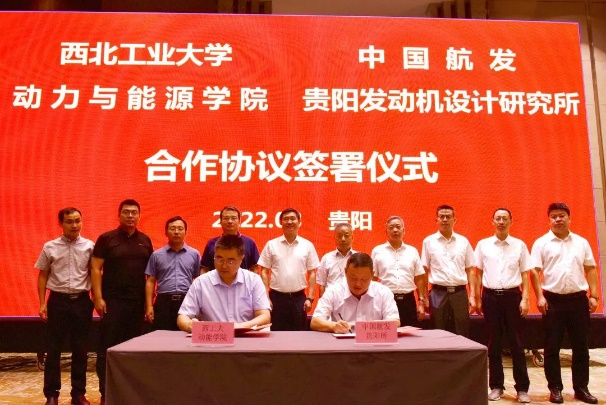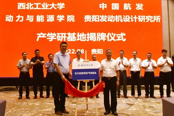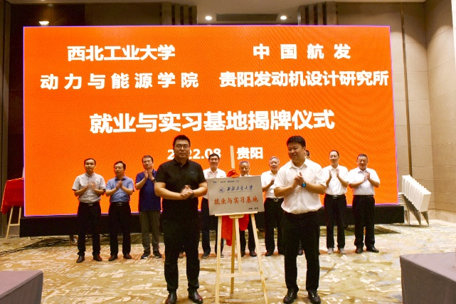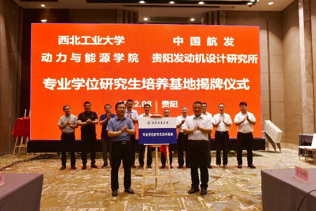 贵阳所所长李永康,党委书记李湘宁,副所长张金锋、于海涛,专职总师,所长助理,部门领导等相关人员,校党委常委、副校长詹浩,动力与能源学院党委书记闫育周,科学技术研究院副院长缑林峰等相关领导和教师代表出席签约仪式。会议由贵阳所党委书记李湘宁主持,双方签署了“整机试验联合试验室”、“型号研制支撑团队”等合作协议,举行了“西北工业大学动力与能源学院产学研基地”、“西北工业大学专业学位研究生培养基地”、“西北工业大学就业与实习基地”、“西北工业大学--中国航发贵阳所整机试验联合试验室”揭牌仪式。
