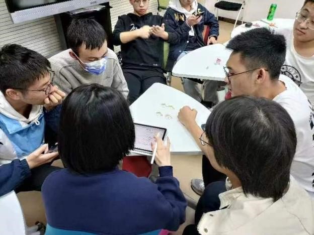 DL052207班就班徽设计展开小组讨论,并派出小组代表介绍本组的班徽设计方案及其内涵,最后通过投票的方式选出7班的班徽。