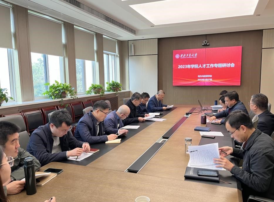 首先,王占学介绍了学院人才队伍建设现状,指出人才引育工作面临的困难和挑战,提出了学院人才工作在“找苗子”、“挖苗子”、“育苗子”等方面的目标及举措。