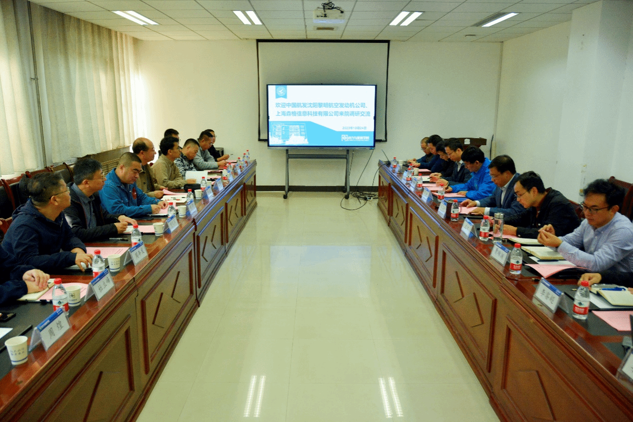 中国航发沈阳黎明航空发动机有限公司公司办项目经理朱勇、技术中心副主任曾庆国和上海鼎格信息科技有限公司总经理李斌等一行于10月24日来动力与能源学院调研交流。院长王占学、副院长王可及教师代表参加调研座谈会。会议由王可主持。