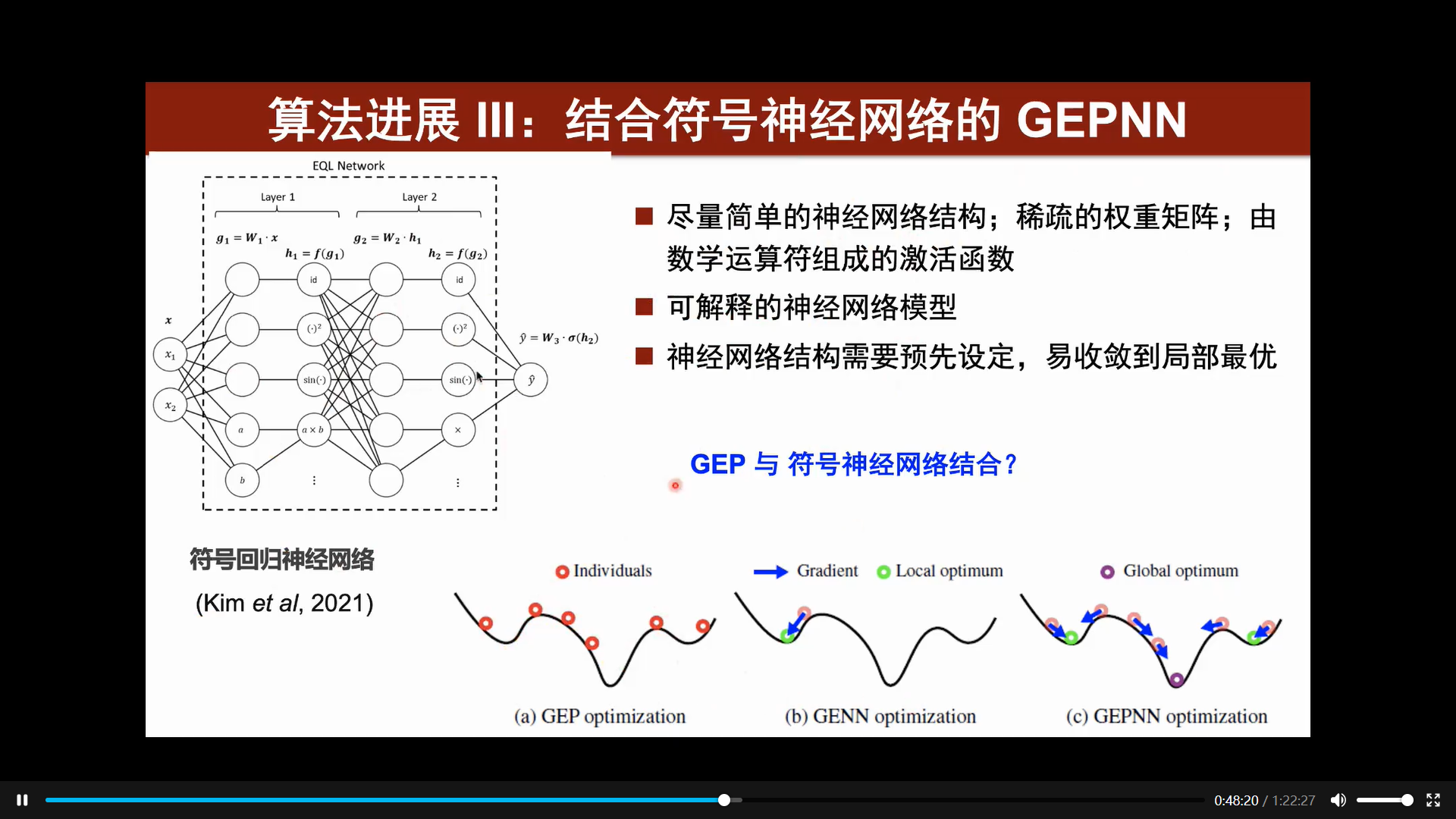 赵耀民老师首先介绍了面向航空发动机的湍流数值模拟,他通过一个动画展示了涡结构与边界层的转捩等现象,清晰直观的展示了数值模拟的工作内容,并对涡轮叶栅高保真数值模拟与湍流模型做了详细的介绍。接着,赵耀民老师讲述了机器学习湍流模型的研究现状与可解释机器学习的必要性与相关研究,并通过相关实例说明了模型的可行性与准确性。然后赵耀民老师对CFD驱动的双向耦合训练方法、多物理耦合问题的机器学习建模、结合符号神经网络的GEPNN这三个算法进展进行了详细的讲解。最后,赵耀民老师与参会人员围绕湍流数值模拟与可解释机器学习模型研究进行了热烈讨论。