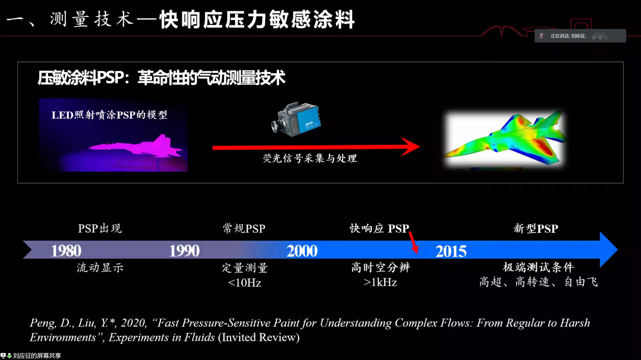 刘应征教授首先介绍了流动测量领域的主流技术手段和高速流动条件下实验测量的难点问题,然后从其团队的研究出发对湍流实验测量的技术发展和利用实验测量对模型参数进行修正最终实现湍流实验测量与数值模拟数据融合,实现整场流动特性的高精度预测进行详细的讲授,最后,刘应征教授与参会专家针对工程应用背景下湍流实验测量与数值模拟数据融合的发展方向等热点问题进行了热烈讨论。