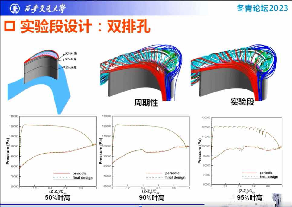 接着晏鑫教授从磨损参数对叶顶性能的影响以及磨损工况下的实验研究介绍了其团队的最新研究成果,其发现磨损参数会增大发动机的总压损失,并且恶化发动机传热和冷却性能。其团队进一步开展了实验研究,结果表明实验测量与模型预测较为吻合,证明其关于磨损程度对动叶气热特性影响的预测模型有效性。