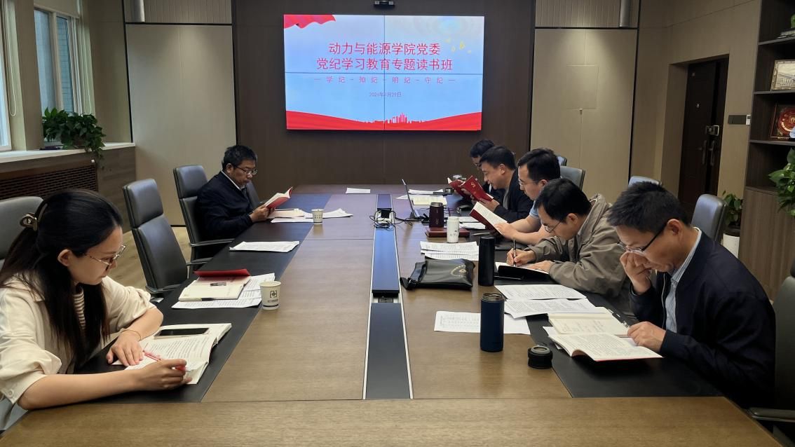 4月29日上午,动力与能源学院党委举行党纪学习教育第一期读书班暨党委理论学习中心组学习会,深入学习贯彻习近平总书记关于党纪学习教育的重要讲话和重要指示精神,认真学习新修订的《中国共产党纪律处分条例》,切实学纪、知纪、明纪、守纪,推动党纪学习教育走深走实。会议由学院党委书记王占学主持,全体党委委员、党员领导干部参加会议。