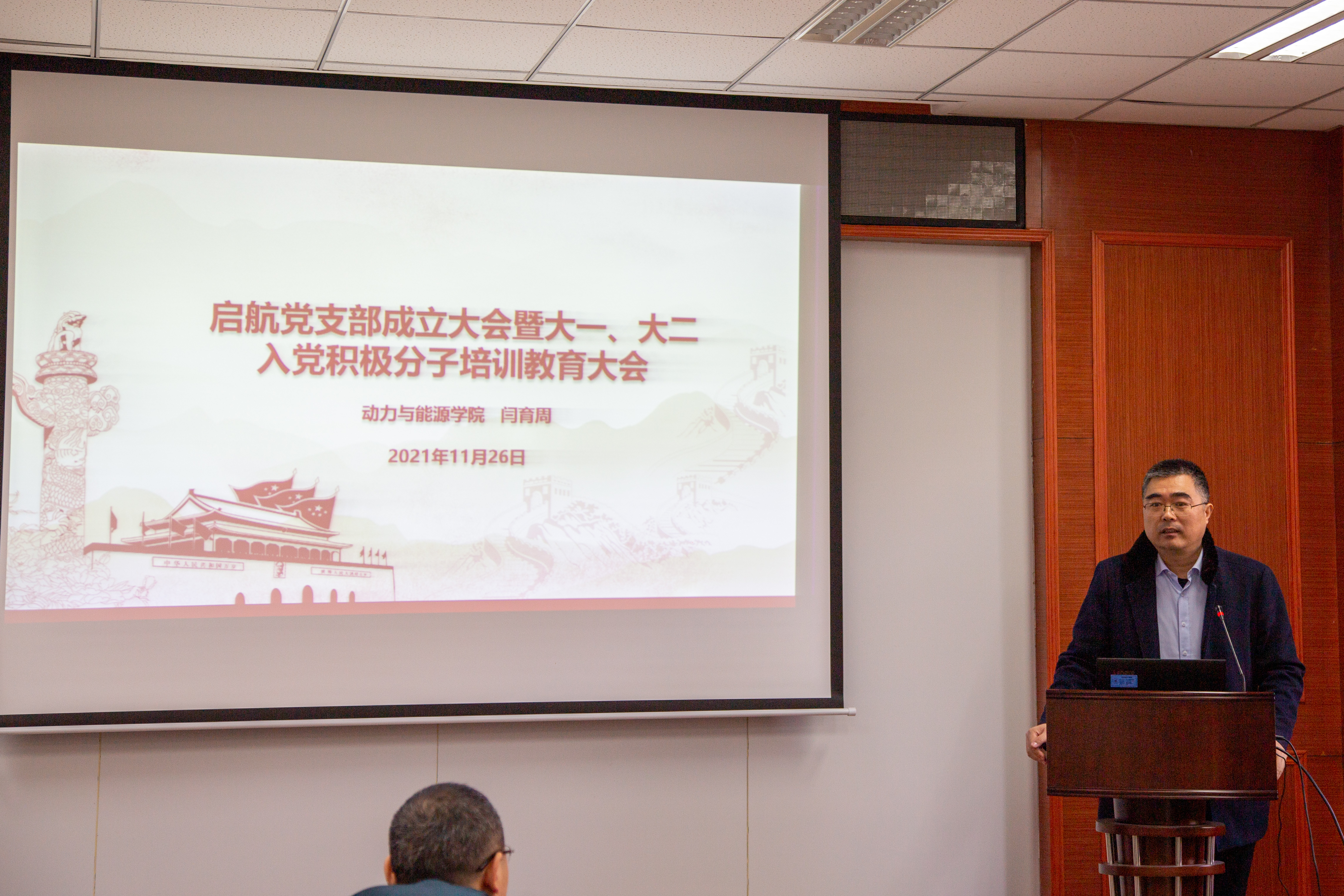 2021年11月26日下午,西北工业大学动力与能源学院“启航党支部成立大会暨大一、大二入党积极分子培训教育大会”于动能学院楼225会议室召开,本次大会由学院党委副书记刘海涌主持,参会人员有党委书记闫育周、启航党支部的老师以及本院20级、21级入党积极分子。