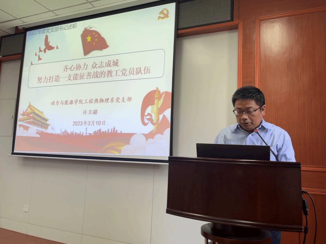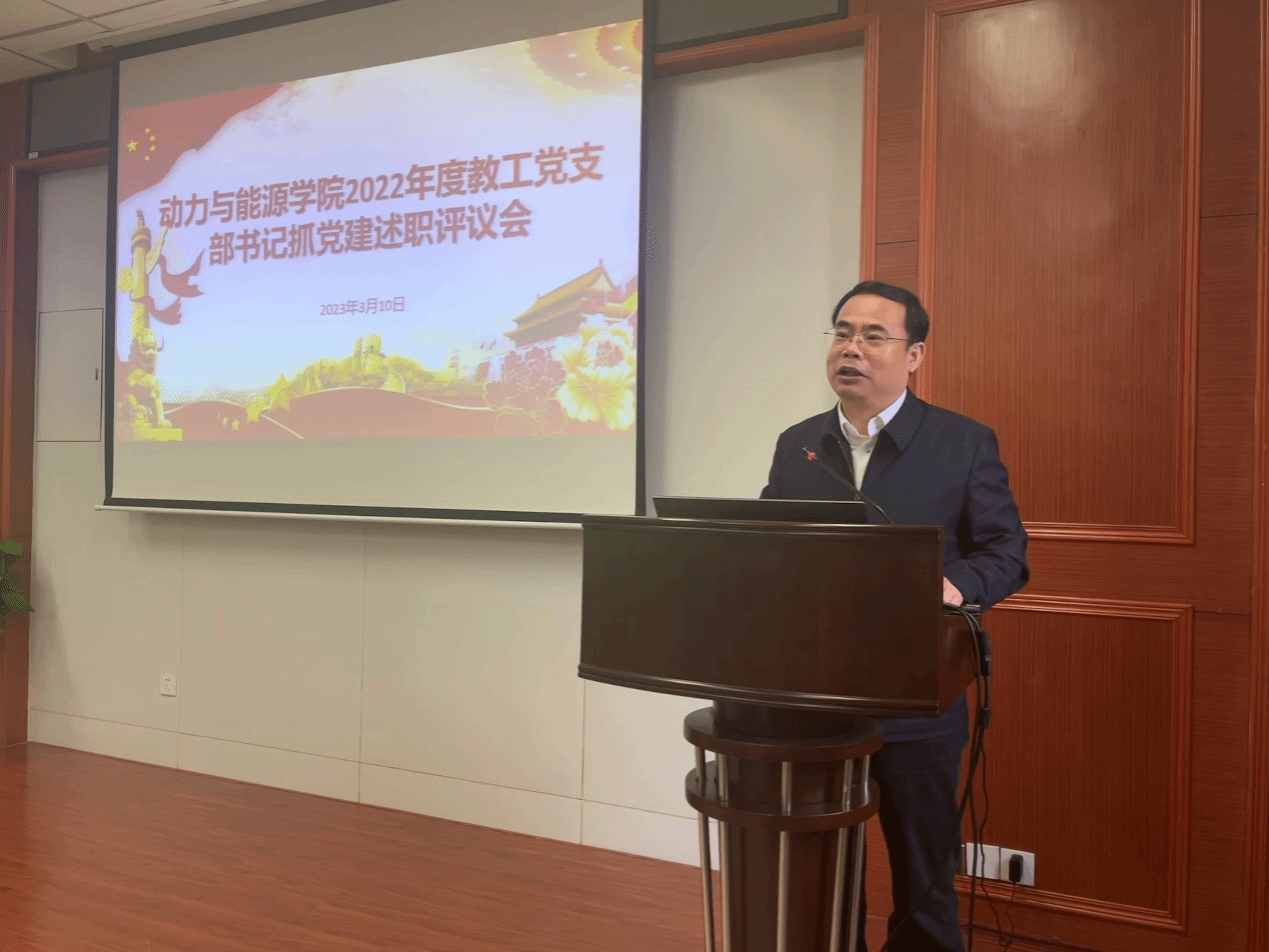 为深入学习贯彻习近平新时代中国特色社会主义思想,加强学校基层党组织建设,提升学生党支部书记党务工作能力。动力与能源学院于3月10日在学院楼225会议室召开了2022年师生党支部书记述职评议大会,对2022年教工党支部和学生党支部工作开展情况进行检查。校党委常务副书记程基伟、组织部副部长王彦革、生态环境学院党委副书记(主持工作)段利兵、校团委副书记张晓红以及学院全体师生党支部书记参加了本次会议。会议由闫育周书记主持。